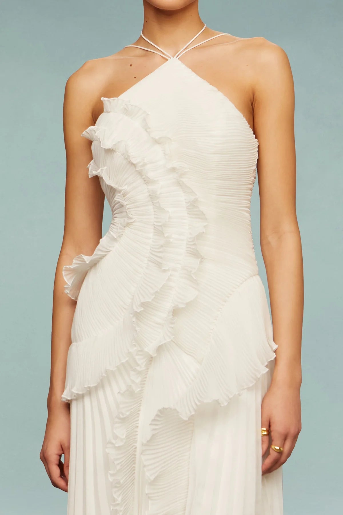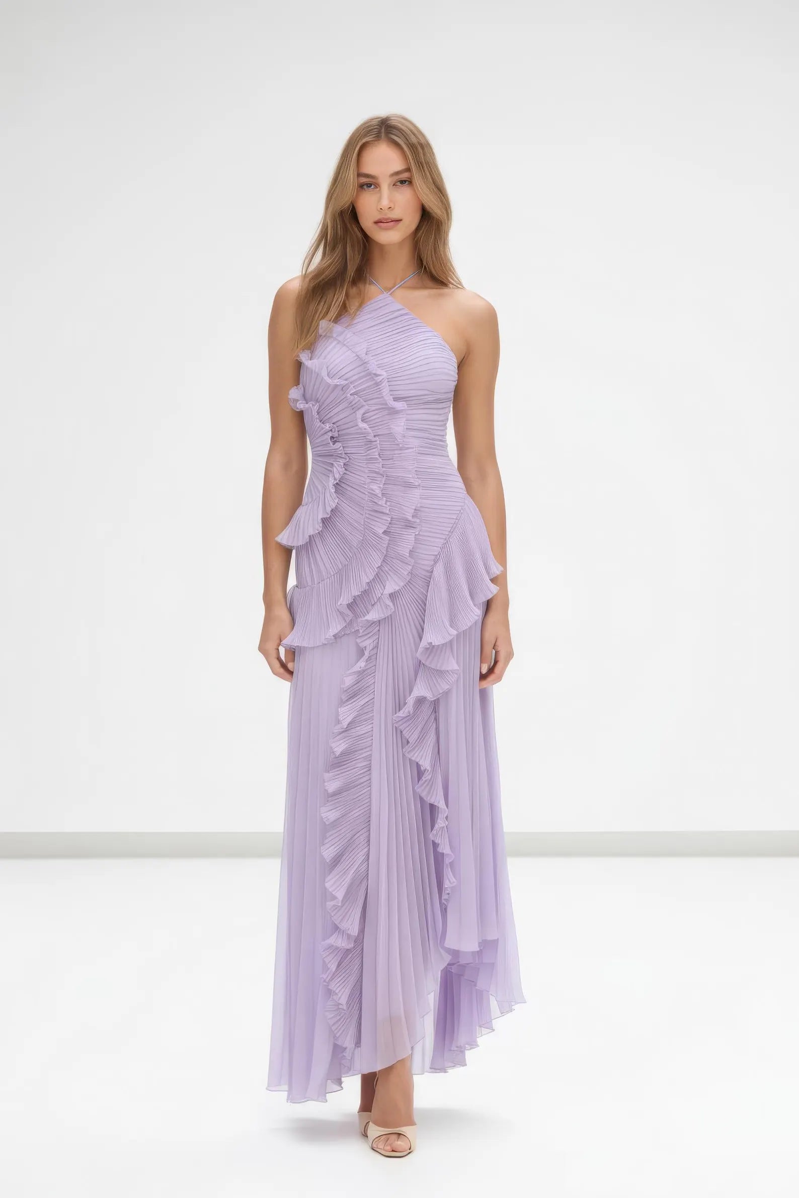 - Kesim: Asimetrik siluet, vücuda zarifçe oturan form