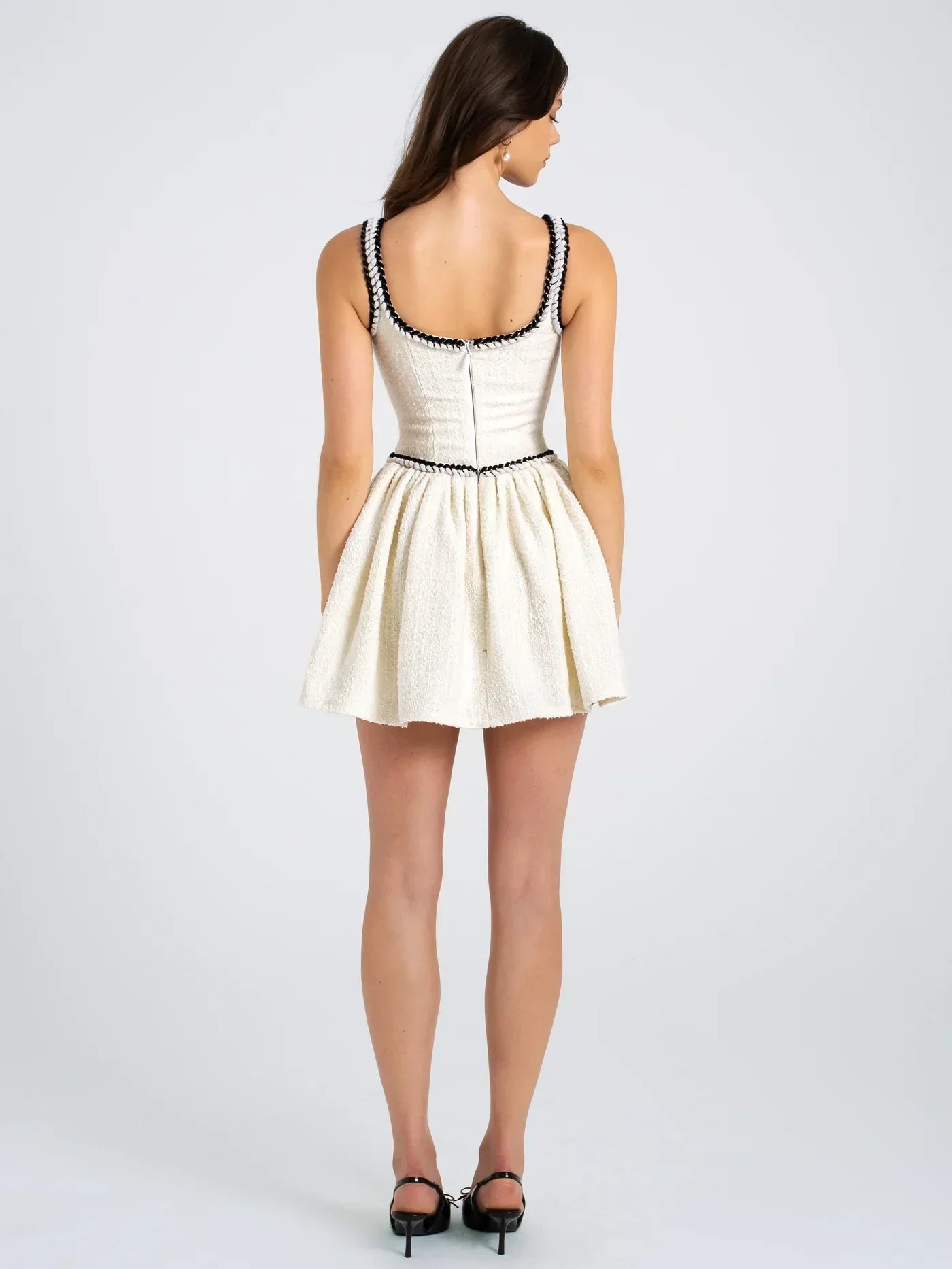 - Kontrast Bağlama Detaylı Pliseli Tweed Kısa Elbise